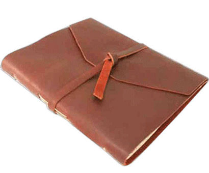 Product Info : Wrapped leather covered notebooks are handmade from weathered patina top grain leather. Inside there are 96 blank rough cut pages of paper. Has a wrap closure. The paper is hand-torn and made of a cotton rag blend. Great for writing and sketching.